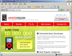 Warezov was historically spread via email attachments, however that activity has also largely ceased. These days, executable attachments via email are almost universally blocked. Most botnet operators have switched to installing via browser/plugin exploits or social engineering. Warezov is no different. Only a few days ago, we saw Warezov being spread through a site advertising free MP3s via download of a P2P program: