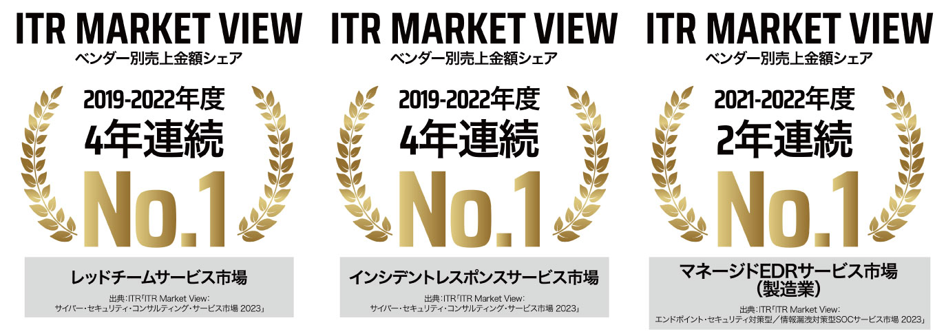- ITR「ITR Market View:サイバー・セキュリティ・コンサルティング・サービス市場 2023」インシデントレスポンスサービス市場:ベンダー別売上金額シェアNo.1(2019-2022年度)